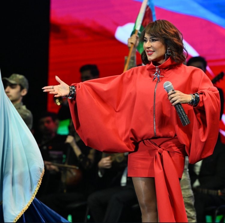 Resorting.Az xəbər verir ki, pop ulduz Bulvar ərazisində keçirilən möhtəm konsertdə çıxış edib. Qırmızılara bürünən sənətçi “Gözün aydın olsun, Qarabağ” əsərini səsləndirib. Füsunkar görünən sevilən ulduzu səhnədə rəqqaslar müşayiət edib. Səhnə şousu qədər ulduzun geyimi də diqqət çəkib. Libasının müəllifi dizayner Lali Rüstəmovadır.