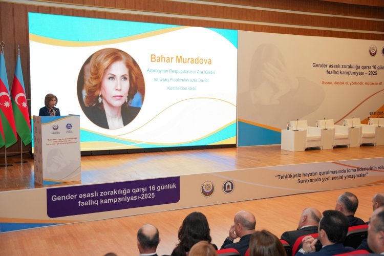 Ailə, Qadın və Uşaq Problemləri üzrə Dövlət Komitəsinin sədri Bahar Muradova konfransın gender əsaslı zorakılığa qarşı 16 günlük fəallıq kampaniyası çərçivəsində təşkil olunduğuna diqqət çəkərək, kampaniyanın ilk növbədə rəqəmsal mühitdə genişlənən zorakılıq formalarına qarşı mübarizənin milli və beynəlxalq səviyyədə həmrəyliyə və birgə fəaliyyətə əsaslanmasının vacibliyini önə çıxardığını vurğulayıb.